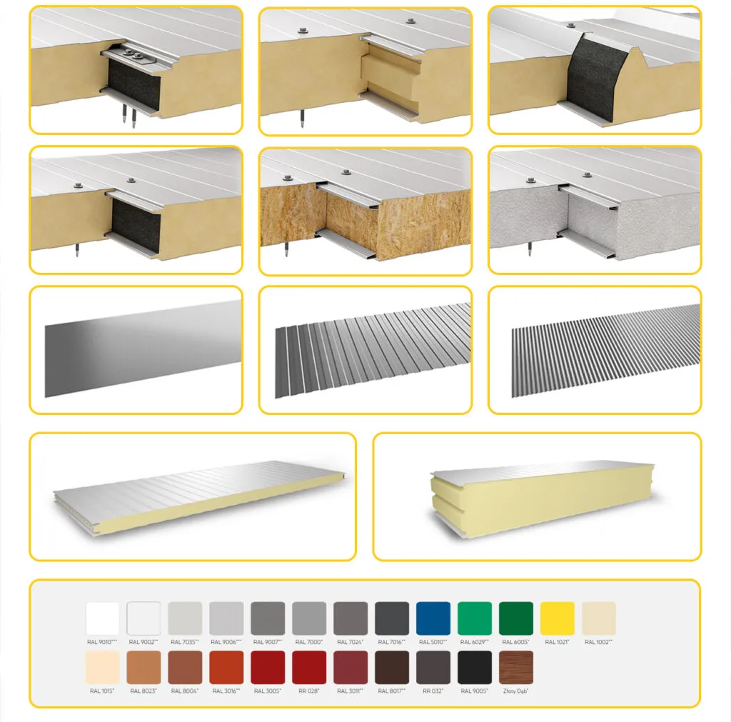 - Płyty z rdzeniem poliuretanowym oferują dobrą izolację, podczas gdy płyty z wełny mineralnej zapewniają lepsze właściwości ogniowe.